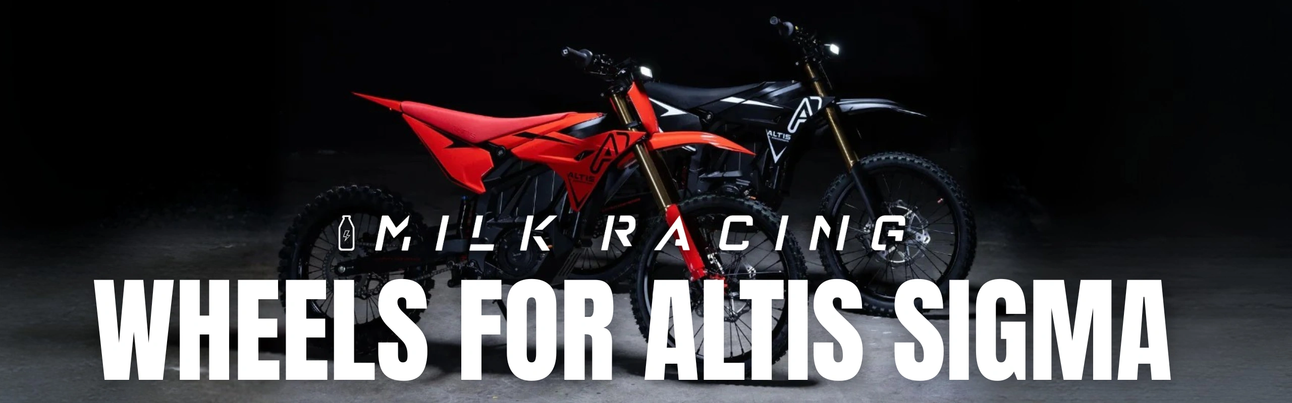 – Polished silver rims with bold Milk Racing logos + Surronster signatures
