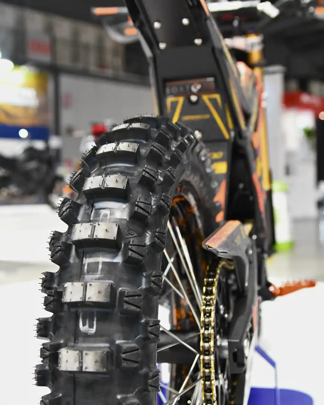 A stronger, wider rim combined with a sealed hub ensures long-term durability. At the same time, the larger front wheel gives the Talaria Komodo a bold, aggressive off-road look.
